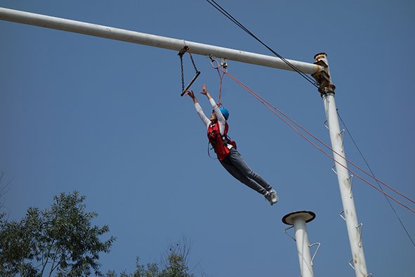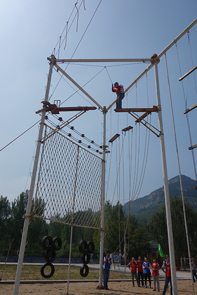 9月20日一早,正式訓(xùn)練之前,教練先是通過團隊熔煉,打破堅冰、營造團隊氛圍,建立起了相互信任的基礎(chǔ)。緊接著在教練員的指導(dǎo)下,參訓(xùn)人員分成兩隊在漢諾塔、高空斷橋、空中單杠、時速極限、激情150活動上進行了比拼。其中漢諾塔、激情150訓(xùn)練,使大家強烈意識到團隊成功是個人成功的基礎(chǔ);個人成功必須建立在團隊其他成員的共同努力與協(xié)作的基礎(chǔ)之上;高空斷橋、空中單杠等高空項目時,團隊每位成員必須膽大心細,敢于挑戰(zhàn),相互鼓勵,戰(zhàn)勝恐懼;整個訓(xùn)練項目下來,兩隊成員實力不分上下,各有優(yōu)勢,但我們比的不是高低,比的不是結(jié)果,而是在整個過程中,我們收獲了什么,感悟了什么。
