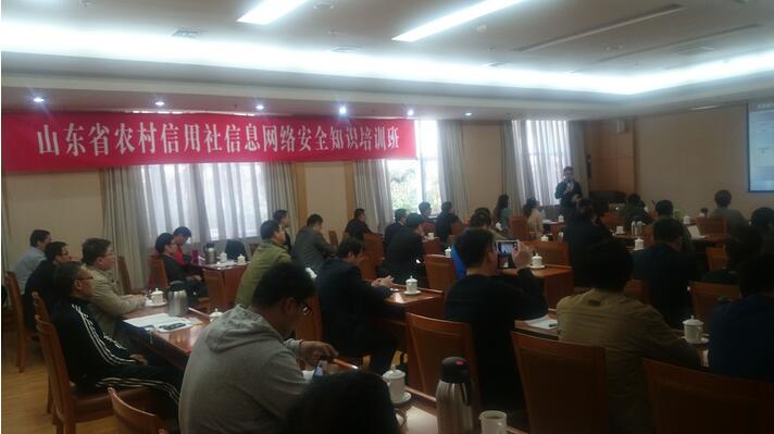 為提高山東省農村信用社各市級聯社信息安全意識及信息安全技能水平,山東省農村信用社聯合社于2015年3月30日至4月3日在山東省干部遠程培訓中心 舉辦了“2015年山東省農村信用社信息網絡安全知識培訓班”,山東新潮信息技術有限公司派出6位培訓講師從金融行業(yè)信息安全防護的多個角度進行了詳細講解,取得了良好的培訓效果。