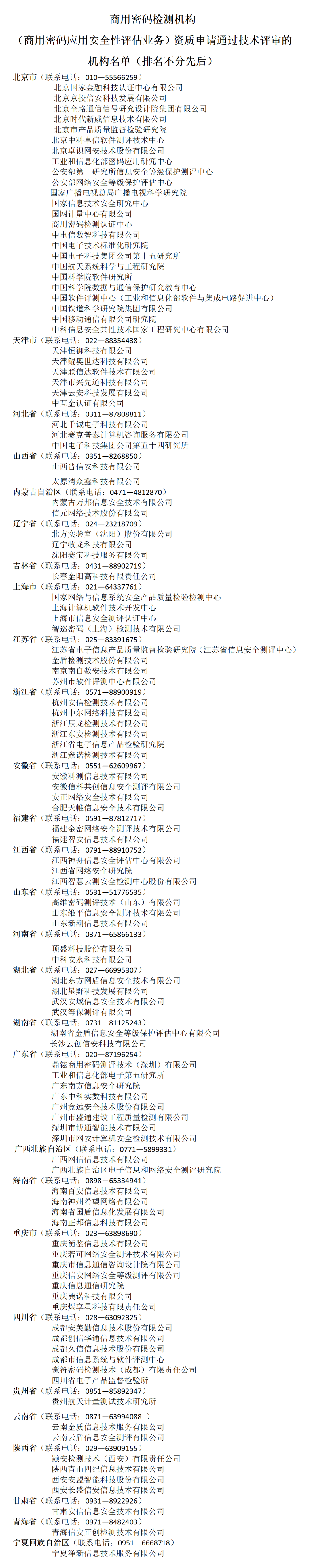 附件:商用密碼檢測機構(gòu)(商用密碼應(yīng)用安全性評估業(yè)務(wù))資質(zhì)申請通過技術(shù)評審的機構(gòu)名單