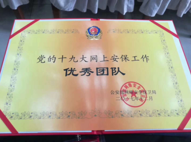 榮獲黨的十九大網(wǎng)上安保工作優(yōu)秀團隊獎