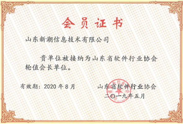 2019年5月,山東新潮信息被接納為山東省軟件行業(yè)協(xié)會(huì)輪值會(huì)長單位